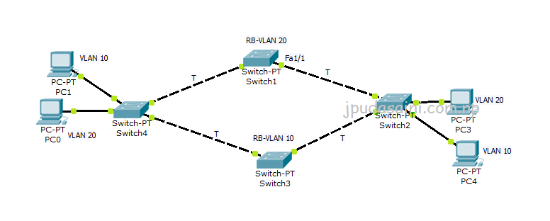 for Root Bridge for both VLANs. Let’s see above topology switch4 wins the Root
