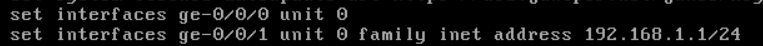 root# set interfaces ge-0/0/1 unit 0 family inet address 192.168.1.1/24